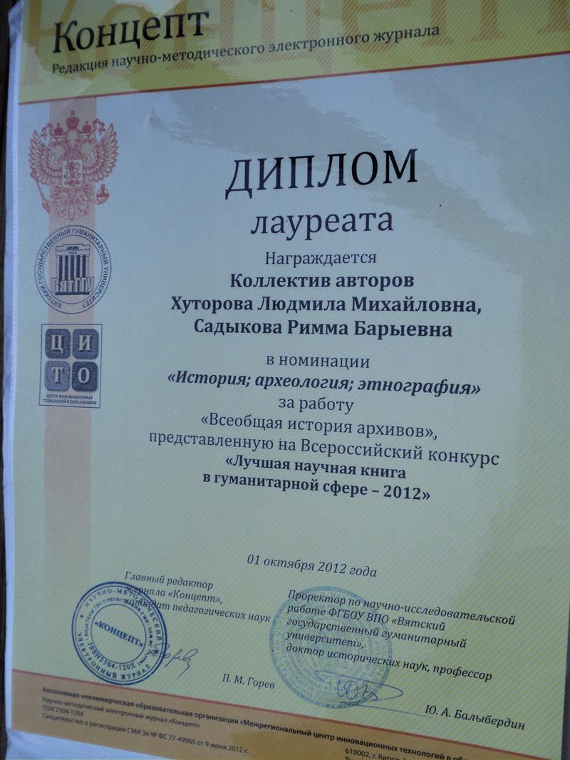 | Хуторова Л.М. Доступ к архивной информации и этические проблемы // Социально-антропологические проблемы информационного общества. Выпуск 1. Концепт. 2013. АРТ 54014. URL: // http://www.covenok.ru/koncept/teleconf. | Научная статья | 2013 |