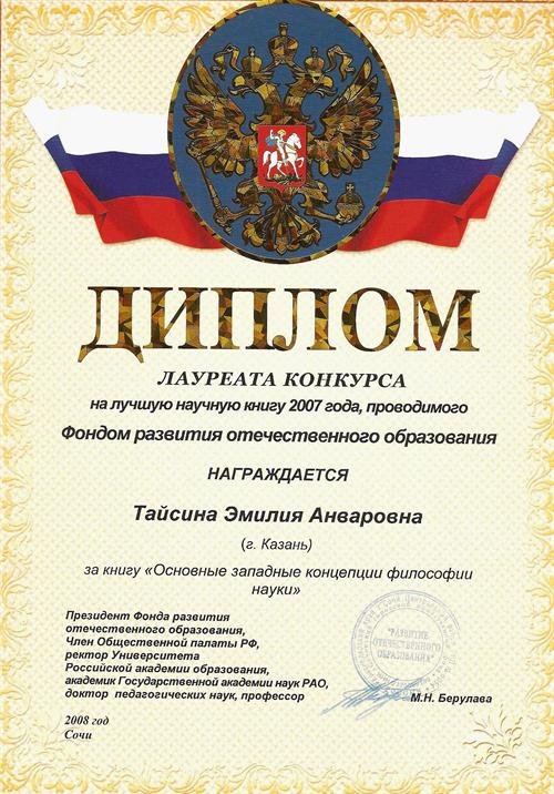 4. Институт повышения квалификации педагогических кадров при КГТУ им. А.Н. Туполева. Программа «Философия». Удостоверение № 2029. Период обучения с 1 сентября 2005 г. по 31 января 2006 г.