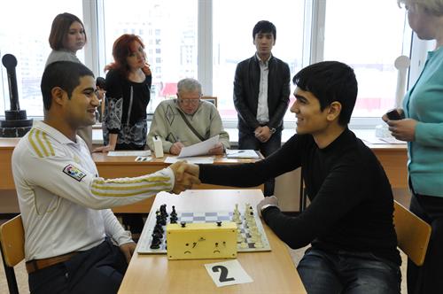 В субботу, 1 марта, в КГЭУ совместно с Ассоциацией иностранных студентов и аспирантов г. Казани состоялся Чемпионат высших учебных заведений г. Казани по шахматам среди иностранных студентов. Инициаторами Чемпионата были студенты Объединения иностранных студентов и аспирантов СНГ во главе с Отабеком Номозовым при поддержке отдела международных связей КГЭУ. Участников шахматного турнира приветствовала проректор по ВВР И.В. Жукова. За победу боролись команды КГЭУ, ПФУ, КГАСУ, КАИ, КГМУ, КГК им. Жиганова. Турнир длился больше семи часов. И все это время шахматисты держали зрителей в изрядном напряжении, удача сопутствовала то одному, то другому игроку.