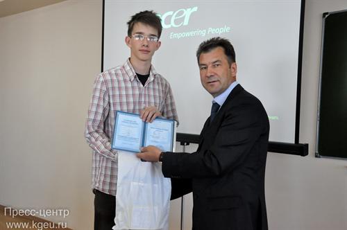 Проректор по учебной работе, а по совместительству заместитель председателя оргкомитета олимпиады В.К. Ильин наградил победителей и призеров олимпиады грамотами и ценными призами. Владимир Кузьмич рассказал о преимуществах получения высшего образования в нашем вузе, ответил на все интересующие вопросы будущих студентов и их родителей. Присоединяемся к поздравлениям и желаем дальнейших успехов всем участникам олимпиады!