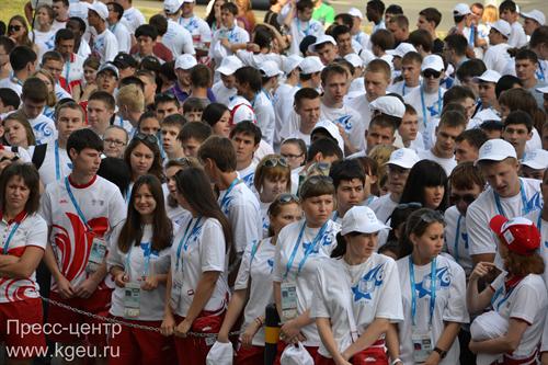 Около 750 волонтеров Энергоуниверситета собрались, чтобы дать старт ряду мероприятий в рамках XXVII Всемирной летней универсиады. Волонтеры и болельщики поклялись продвигать идеи спорта, международной дружбы, здорового образа жизни и представлять студенчество Казанского государственного энергетического университета.
