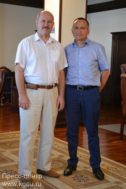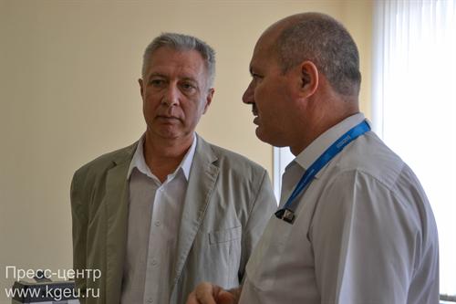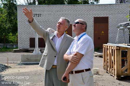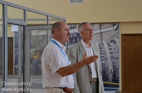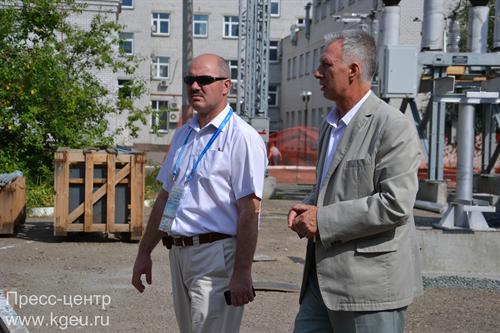 Проректор по интеграции с производством КГЭУ Д.Ф. Губаев с радушием встретил белгородского гостя и провел экскурсию по нашему вузу, рассказав Сергею Николаевичу про строящуюся подстанцию 110/10 Кв, учебный центр Schneider Electric, демонстрационный центр "Энергосбережение и энергоэффективности" и о том, что в этом году количество бюджетных мест увеличилось на 15%. Ректор КГЭУ Э.Ю. Абдуллазянов оказал теплый прием С.Н. Глаголеву, ректоры обсудили ряд вопросов, в том числе изменившийся за последнее время облик Казани.