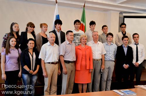 Секретарь ПК В.И. Кротов уделил внимание вопросам поступления в КГЭУ. Проректор по ВВР И.В. Жукова рассказала будущим студентам о внеучебной жизни и подчеркнула, что активная жизненная позиция не препятствует, а лишь способствует образовательному процессу. Проректор по ИП Д.Ф. Губаев со своим свойственным взглядом на перспективу заострил внимание на вопросах о трудоустройстве еще будущих студентов, но уже будущих выпускников. А проректор по НО А.В. Леонтьев заметил, что главные в жизни вещи – хорошее образование и удачный брак, а Энергоуниверситет прекрасно поспособствует как в первой, так и во второй жизненной необходимости, ведь многие студенты не просто получают прекрасные знания в нашем вузе, но и встречают верных друзей, а кто-то даже находит свою любовь.