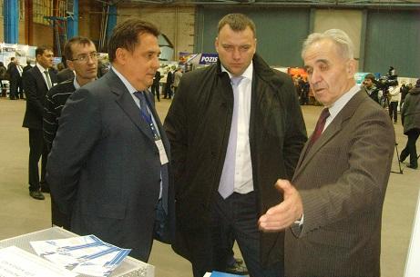 Генеральный директор ОАО «НПО «Радиоэлектроника» им. В.И. Шимко» Р.Н. Шарипов и главный конструктор А.И. Борищевский демонстрируют систему мониторинга гололеда директору департамента радиоэлектронной промышленности Министерства промышленности и торговли РФ А.С. Якунину.