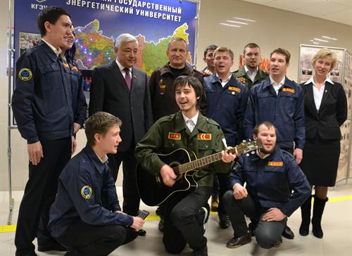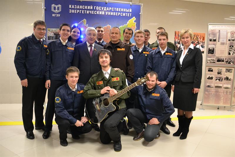 КГЭУ был представлен командой молодых бойцов, а по совместительству самых задорных исполнителей гимна всех стройотрядовцев. Стенд Энергоуниверситета с синей подсветкой областей и регионов, в которых трудились наши студенты, не оставил без внимания председатель Госсовета РТ Ф.Х. Мухаметшин. Фарит Хайруллович послушал рассказ ректора КГЭУ Э.Ю. Абдуллазянова и командира СТО КГЭУ И.И. Суфиярова о деятельности студенческих отрядов Казанского энергетического, а затем студенты КГЭУ в присутствии председателя Госсовета исполнили такую знакомую всем композицию.