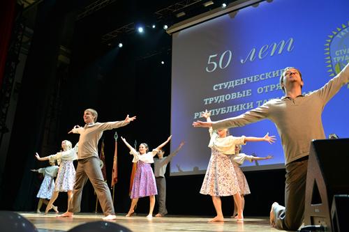 Хочется отметить, что студенты и руководство Энергоуниверситета в этот день не только принимали поздравления, но и сами имели возможность поздравить с 50-летием ветеранов, участников и активистов всех направлений студенческих отрядов. Танцевальный коллектив КГЭУ «Кристалл» выступил с одним из своих номеров и поднял настроение всем участникам слета.