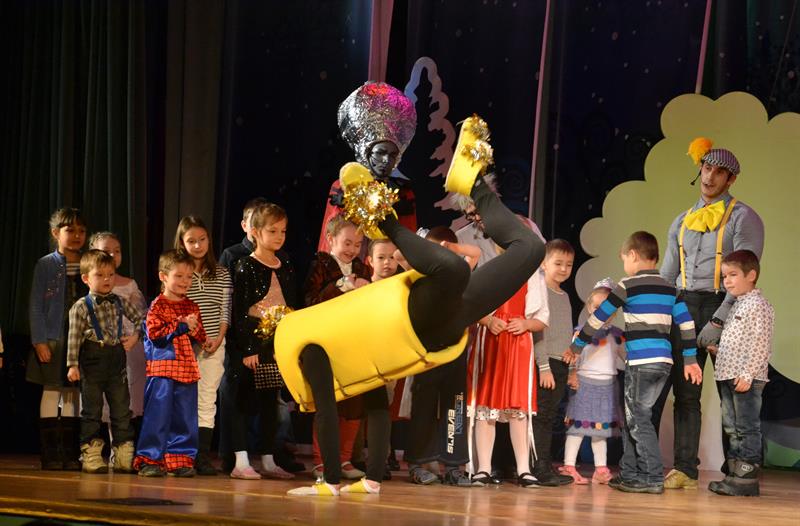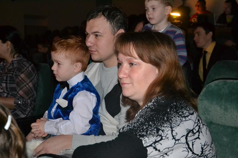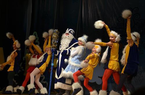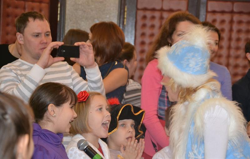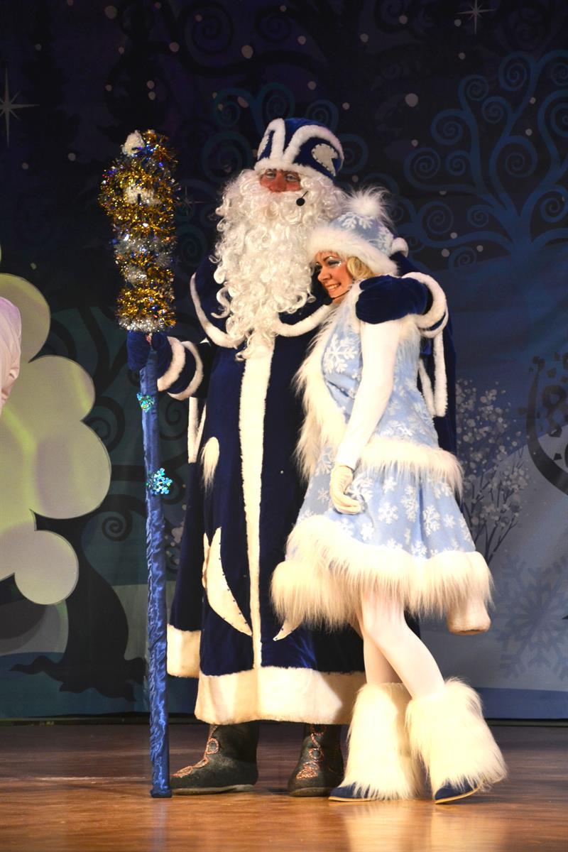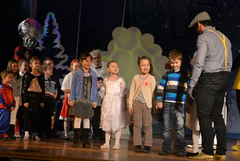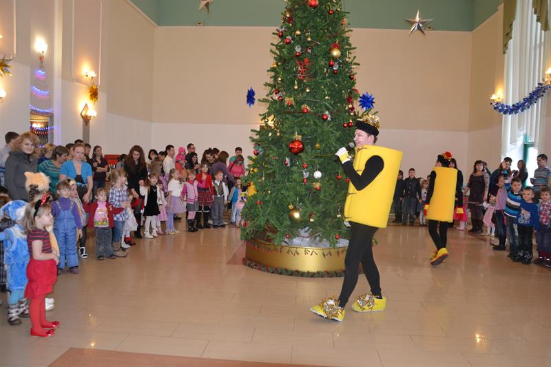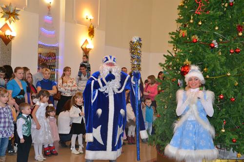 И какой Новый год без Деда Мороза и Снегурочки? После яркого спектакля юные зрители вместе с Дедушкой и его внучкой принялись водить хороводы вокруг зеленой красавицы. Веселые танцы, интересные конкурсы, и много-много подарков. Вот он, настоящий Новый год!