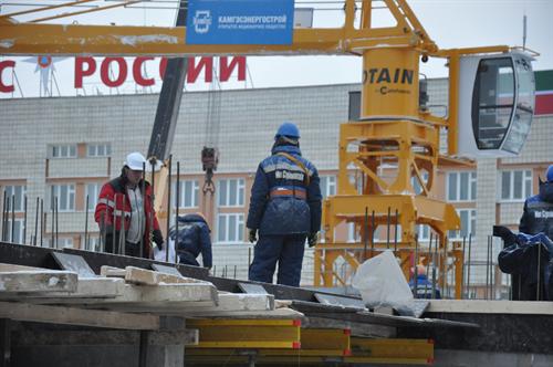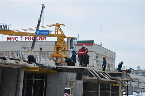 На сегодняшний день продолжается строительство 19-ти этажного каркасно-монолитного общежития «КГЭУ» по ул. Яруллина. Ведутся работы по монтажу и креплению опалубки; по вязке арматурного каркаса перекрытий стен 1-го этажа.