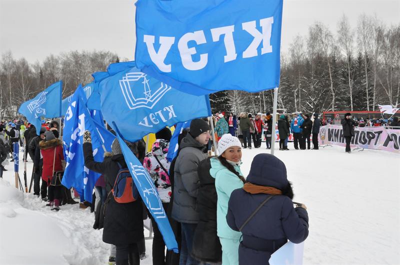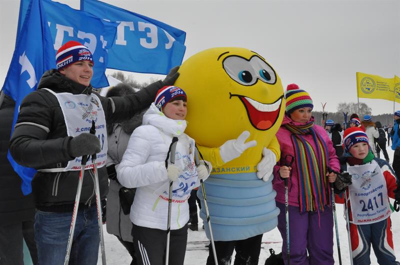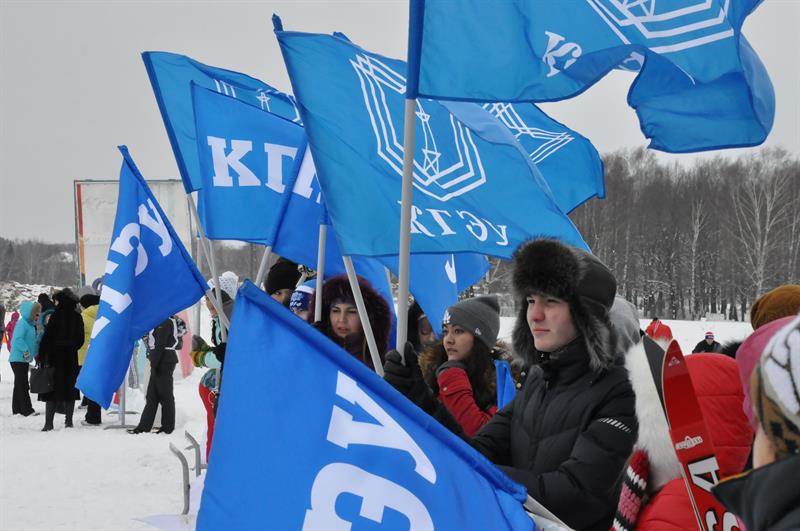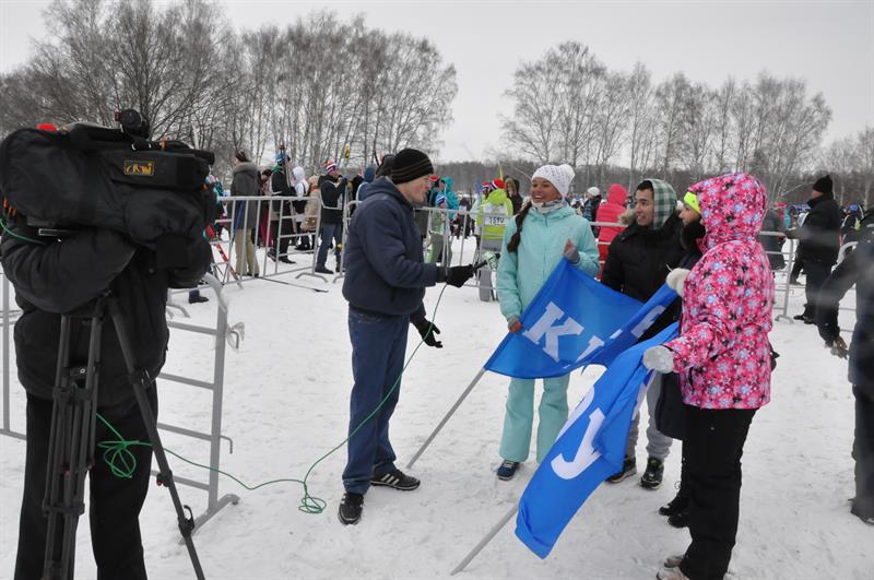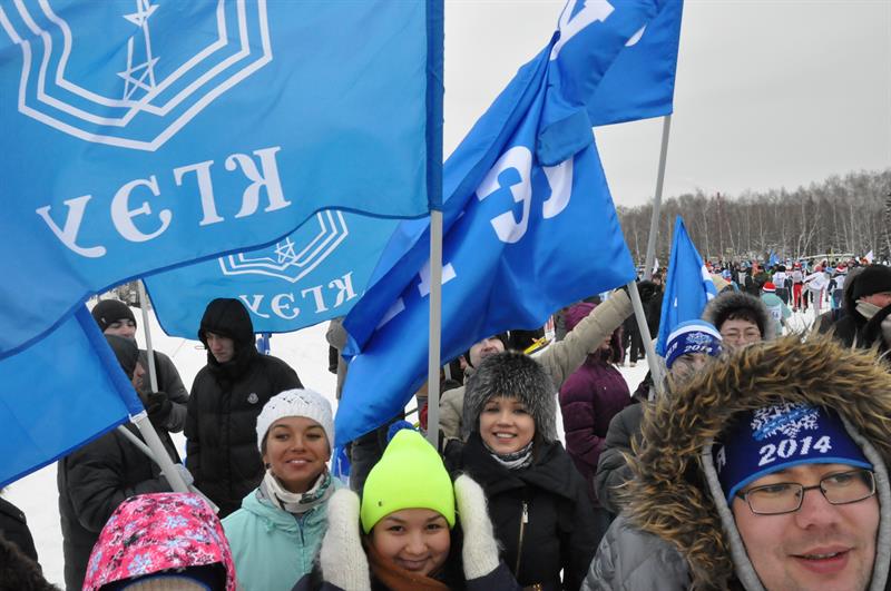 И вот, пройдя сотни метров, участники приближаются к финишной черте… Одно удовольствие пересекать эту самую черту, когда тебя встречают яркими флагами родного университета, когда трибуны скандируют «Энерго! Энерго!», когда отовсюду доносятся громкие аплодисменты. Даже наша любимая лампочка – бессменный символ КГЭУ – приобщилась к массовому спорту и встречала лыжников на финише.