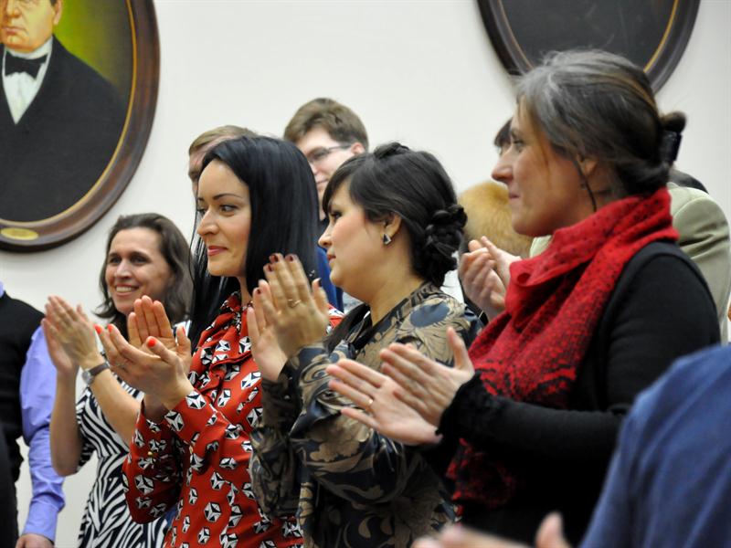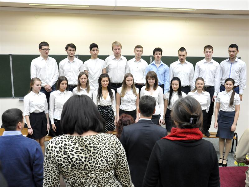 Первых выпускников поздравили проректор по учебной работе В.К. Ильин, руководитель центра дистанционных технологий Ю.Е.Николаева, заведующие кафедрами. В честь них хоровая капелла КГЭУ исполнила студенческий гимн Gaudeamus.