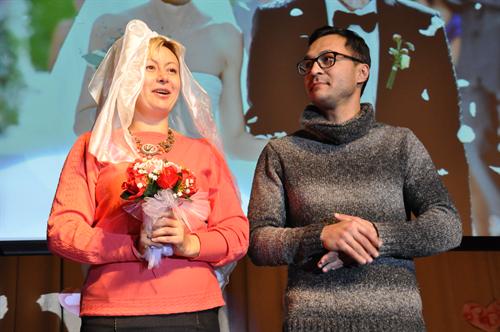 Что касается самих брачующихся, то их роль исполняли Г.А. Ляукина и И.Т. Сунгатов. После завершения официальной части некоторые гости из жюри произнесли в адрес «виновников торжества» поздравления и подарили зрителям презентацию об истории любви молодых.