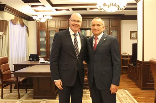 The delegation was headed by the CEO of the Thuringia Agency of economic development, Andreas Edge. Moreover the university was visited by the CEO of the Erfurt center of vocational training, Belkner Frank, the head of the Advanced Training Academy of Erfurt training center of vocational education, Andreas Paylke, the authorised officer in Thuringia questions in Russian, Guzel Shaikhullina.