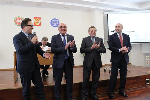 The results of the vote were announced by the chairman of the counting commission, Irina Akhmetova. 146 participants of the conference voted in favor of E.Y. Abdullazyanov, 15 - in favor of V.K. Ilyin, 1 bulletin was declared invalid. Ilkhat Fardiev, the Director General of JSC "Grid Company" congratulated the newly elected rector, presenting E.Y. Abdullazyanov a medal for his services to the "Stetevoy company" and saying that thanks to the Kazan State Power Engineering University all the Tatarstan power system has its own specialists.