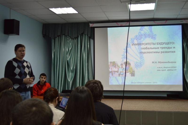 Для участников проводились различные тренинги, мастер-классы и курсы «ШКОЛЫ МОЛОДОГО УЧЕНОГО - 2013» направленные на формирование ученых нового типа, изучение передового опыта, приобретение необходимых для исследователей навыков и повышение эффективности научной молодежи Приволжского федерального округа. В процессе тренингов все участники были поделены на 5 команд, которые соревновались между собой в различных интеллектуальных состязаниях.