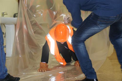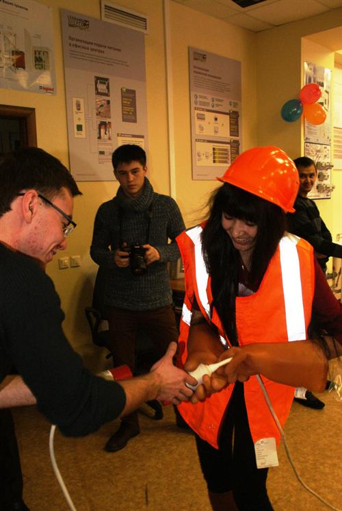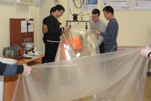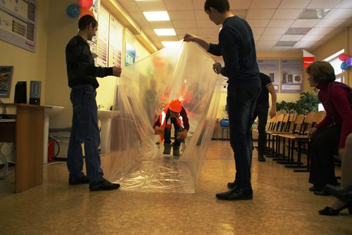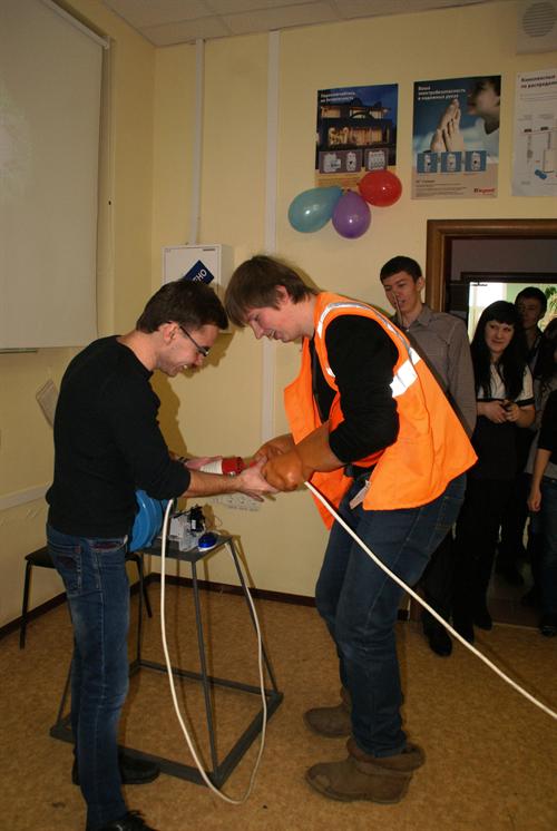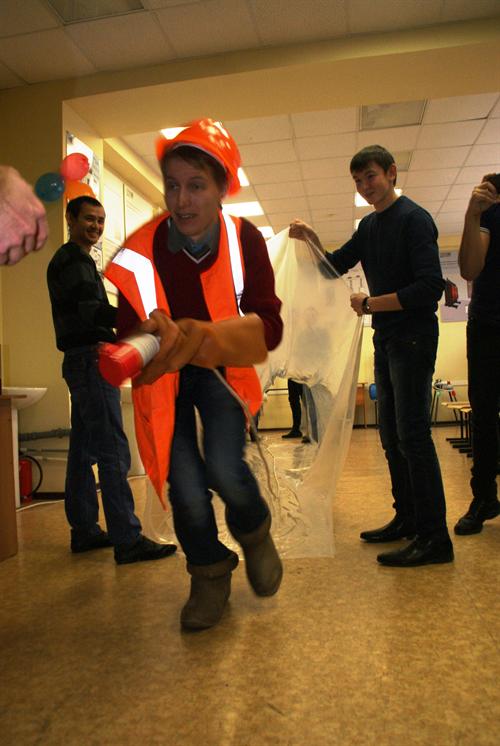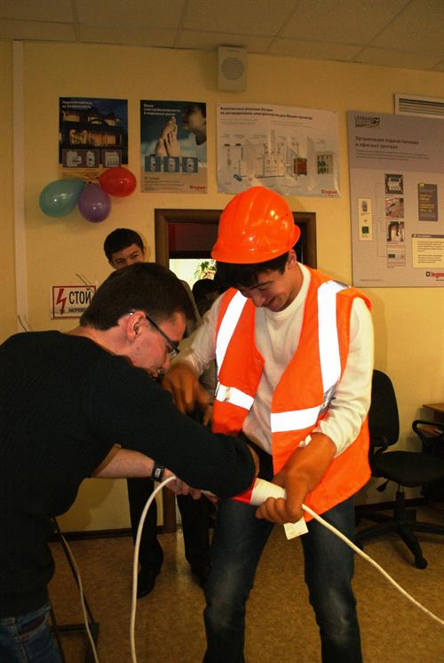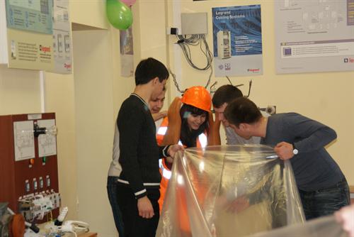 По имеющейся традиции процесс посвящения в ЭНЕРГЕТИКИ для первокурсников заключался в прохождении ими ряда испытаний, которые для них подготовили студенты старших курсов (ЭХП-1-10 ЭХП-1-09 и ЭХПм-1-13). Новичкам предлагалось перевоплотиться в действующих энергетиков и произвести подключение электродвигателя, пройдя через созданные старшекурсниками препятствия. Первокурсников в темном коридоре облачали в защитный жилет электрика, каску, диэлектрические рукавицы и боты, раскрутили, одновременно задавая тематические вопросы, и отправляли в аудиторию, где пройдя через рукав из полиэтилена, необходимо было произвести подключение и пуск трехфазного двигателя.