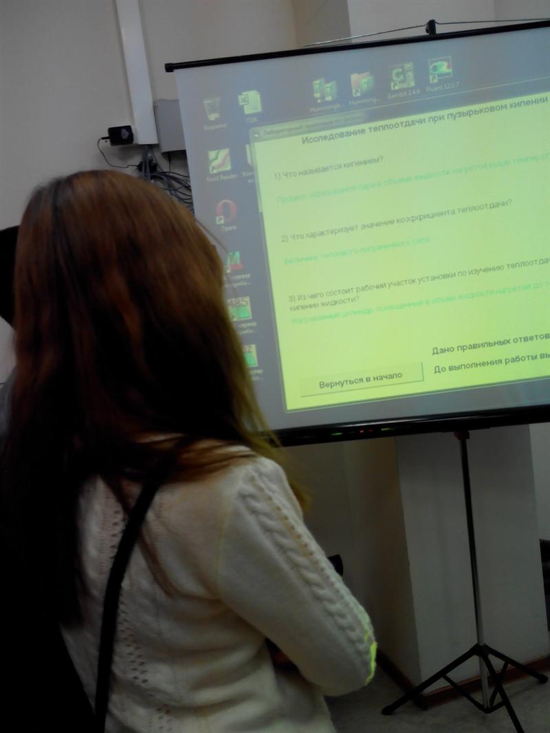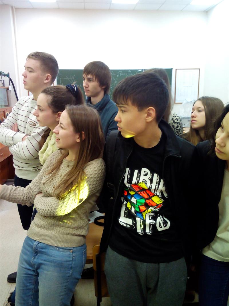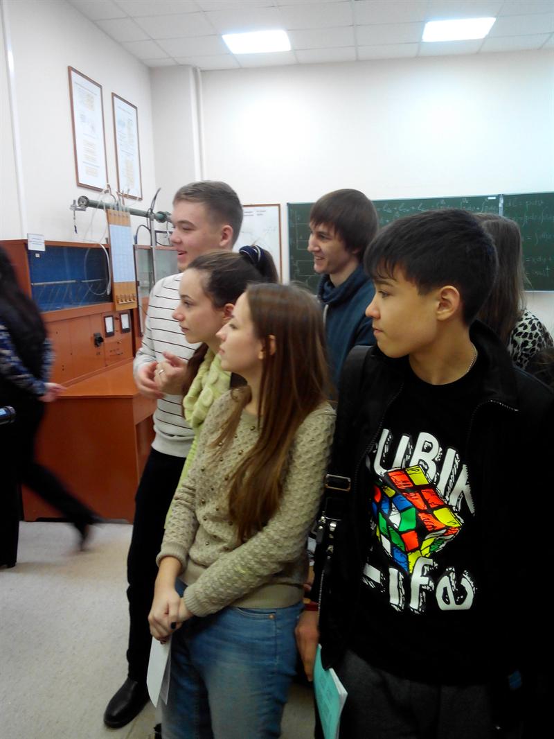 Все желающие задавали интересующие их вопросы, осмотрели помещения и познакомились с лабораторным оборудованием кафедры ТОТ и даже участвовали в теоретическом тесте и наблюдали физические явления в экспериментальных установках. Ребятам были розданы брошюры и рекламные материалы о кафедре ТОТ, о Институте теплоэнергетики, о подготовительных курсах и о КГЭУ в целом.